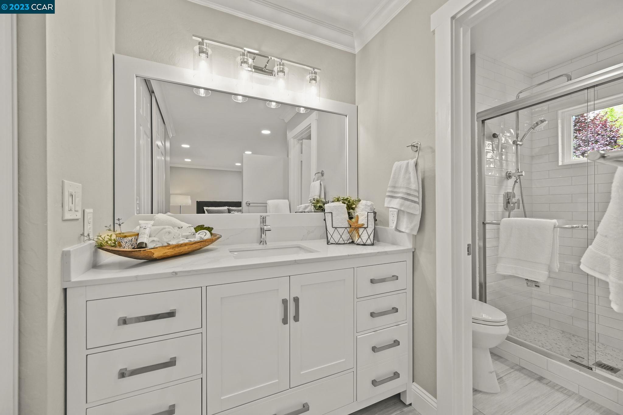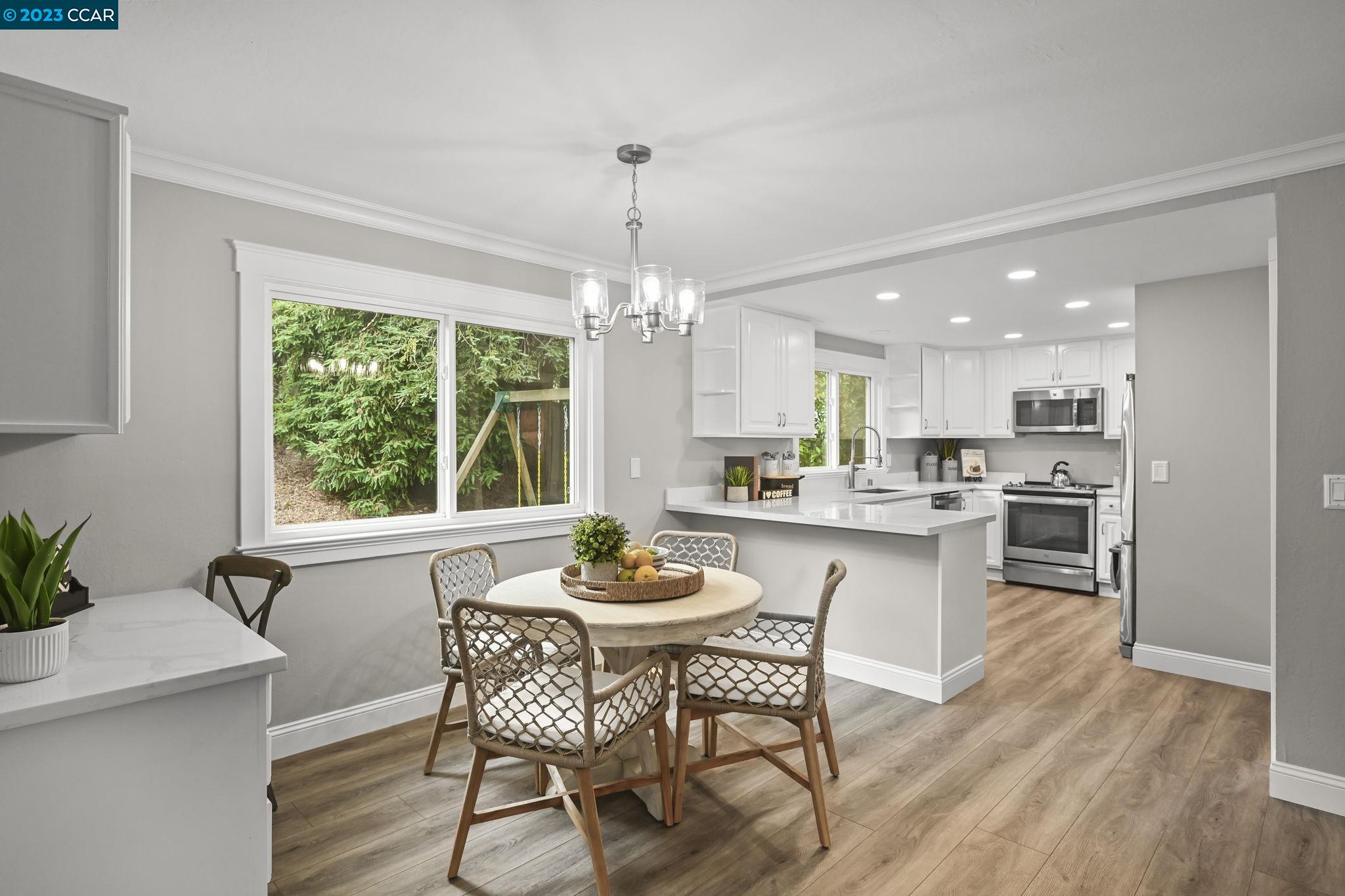 Nestled on the Lafayette/Pleasant Hill border you will find this gem. Recently remodeled/updated this traditional 2 story home is located on a quiet cul-d -sac in a very sought after neighborhood of Pleasant Hill. With new designer touches throughout the very light and bright home is offering a formal living room, dining room, large open concept kitchen/eating area/family room, 4 Bedroom, 2.5 bath. The list of upgrades and updates are endless. New flooring, new kitchen countertops, sink, dishwasher, microwave, oven and range and new bathrooms. Beautiful touches of crown molding to include window trim, inside lighting replaced with Lutron smart home switches, interior painting, new roof in 2021. List of all improvements available. Perfectly located in Pleasant Hill with easy access to both HWY 24 and 680, minutes to Bart, favorite restaurants, scenic trails, great schools & popular school.